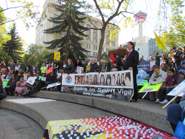 Organized by Awo Taan Healing Lodge Society, the Ninth Annual Sisters in Spirit Vigil was an opportunity to honour the mothers, daughters, grandmothers, sisters and nieces, and to take a stand against violence. The Native Women’s Association of Canada has repeatedly called for a national inquiry into the missing women. According to the Status of Women Canada, 65 per cent of women admitted to Alberta emergency shelters are Aboriginal.