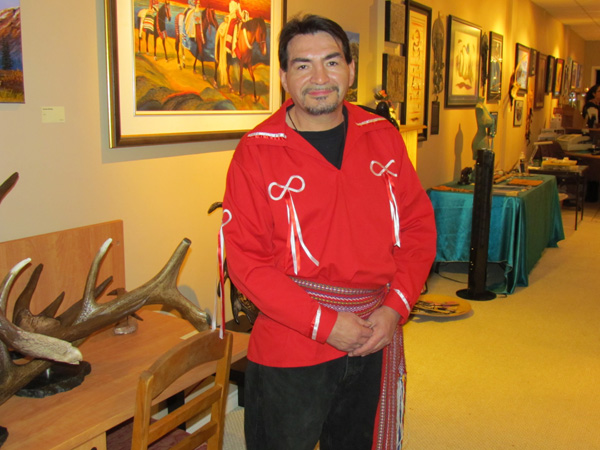 Local Métis artist Ray Lambert, who designed the Métis Nation logo, showed deer and moose antler and soapstone carvings at Yvonne Jobin’s Moonstone Creation Gallery and Giftshop in Inglewood during the Nov. 5 opening. Work by Lloyd Pinay, April Mercredi and others was also featured. April Mercredi’s colourful multi-media creations and Jobin’s own exquisitely beaded creations on traditionally tanned hides were on display as well as paintings, spirit masks, wood and stone carvings, pottery, bead and leather work and jewellery. Jesse Gouchey showed his short animated film, “Spirit of the Bluebird,” created from the colourful neighbourhood mural he painted to honour Gloria Black Plume. Continuing until Dec. 31, the show presents an opportunity to buy unique authentic Aboriginal art in a variety of media.