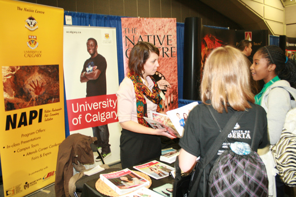Katie Hope, Aboriginal and Multicultural admissions officer for the University of Calgary offers advice to students during the Blueprint For The Future career fair held on Oct. 26 in Edmonton. The event, hosted by the National Aboriginal Achievement Foundation, is Canada’s largest Aboriginal career fair. It takes place twice a year and travels to different cities across Canada.