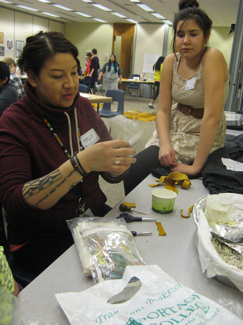 Holly Rae Yuzicapi, from the Standing Buffalo Dakota Nation in Southern Saskatchewan, worked with 24 junior high students from several Edmonton Public Schools as part of an Aboriginal Art workshop themed Share Your Story. Yuzicapi is the EPS artist-in-residence. The workshop allowed Aboriginal students to have an enriching artistic experience guided by a recognized Aboriginal artist. The students’ work, which was created with acrylic paint, mixed media and traditional arts, will be displayed at the Stanley A. Milner Art Gallery in June.