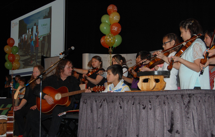The Métis fiddlers from Prince Charles school performed at the Truth and Reconciliation Commission’s birthday party on the final day of the seventh national event. The birthday celebrations recognize all those children who attended residential schools but never had their birthdays marked.