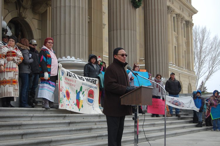 Mercredi, of Treaty 8, put the call out to Chiefs in Treaty 6 and 7 to join him and the Idle No More movement in solidarity in the peaceful protest.