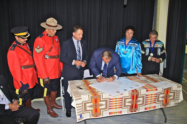 A special ceremony was held in Wabasca on Sept. 12 to celebrate the conclusion of a historic land claim settlement in northern Alberta and to mark a major turning point for Bigstone and Peerless Trout First Nations. A key part of the settlement was the creation of a new band for the communities of Peerless Lake and Trout Lake. Members of Peerless Trout First Nation were members of Bigstone Cree Nation, but historically considered themselves as separate and distinct from Bigstone. The Peerless Trout First Nation was officially constituted on May 19, 2010, with members voting for their chief and council in June 2010. The settlement resolves outstanding issues relating to treaty promises dating back to the late 1800s. It includes approximately $259 million and up to 140,000 acres of unoccupied provincial Crown land to become new reserve land for the First Nations. This figure also includes $59 million for renovations and construction of new infrastructure projects for the First Nations. Alberta’s contribution includes $28 million and a commitment to construct two new elementary schools in Peerless Lake and Trout Lake, as well as water treatment plants for each of these communities.