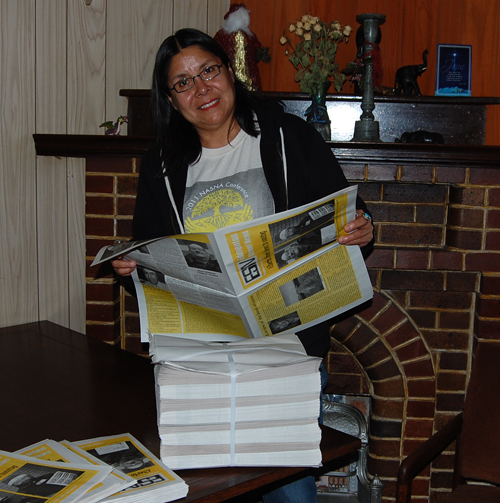 Dumont printed between 2,500-3,000 papers for the inaugural run of Alberta Street News, with 600 shipped to Calgary. She is presently looking for more vendors for Calgary as well as more writers.