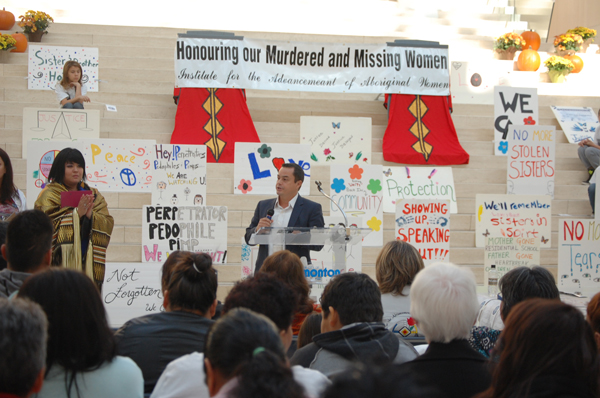 Caption: Assembly of First Nations National Chief Shawn Atleo addressed the issue of murdered and missing Aboriginal women: “To be violence free in our houses, in our homes, it begins there.”