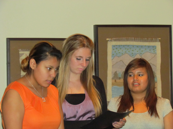Using skills learned in performing, the young Aboriginal women guided the intimate Glenbow audience through story by connecting with the history embodied in each weaving. In a dramatic and moving presentation, the girls interpreted the stories artistically through story, song and poetry.