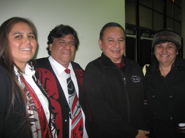 Photo caption: Rosanne Daniels and Robert Morales of the Hul’qumi’num Treaty Group are supported by Union of BC Indian Chiefs Grand Chief Stewart Phillip and his wife Joan Phillip, a councillor for the Penticton Indian Band, in a human rights case launched against Canada internationally.