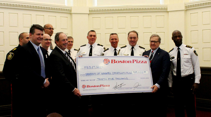 Enright, franchise Boston Pizza Manitoba, along with Winnipeg Police Chief